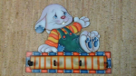 Cabide de madeira em choupo com frente recortada a laser com desenho de coelho.