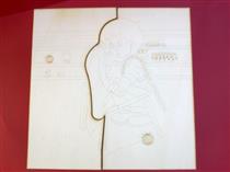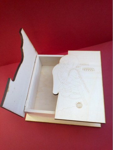 Caixa de madeira em choupo com 2 tampas com recorte a laser de desenho de menino custoreiro.