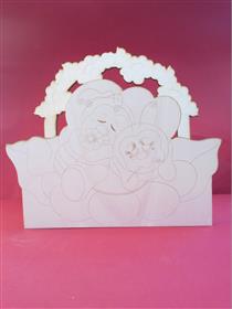 Cesto de madeira em choupo recortada a laser com desenho de abelhas.