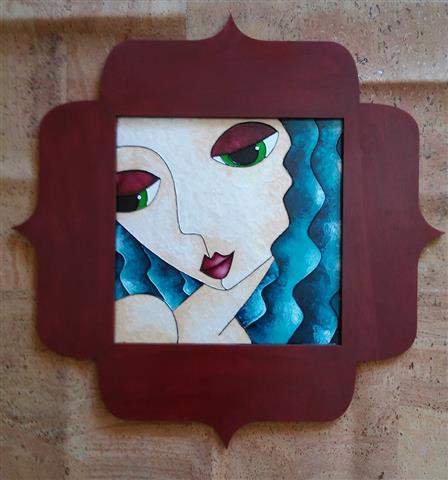 Quadro de madeira (choupo) com desenho gravado e com moldura de madeira em choupo com recorte a lazer.