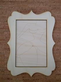 Quadro de madeira (choupo) com desenho gravado e com moldura de madeira em choupo com recorte a lazer.