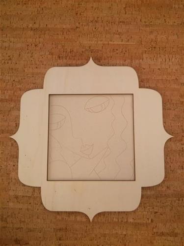 Quadro de tecido com desenho gravado e com moldura de madeira em choupo com recorte a lazer.