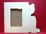 Moldura de madeira em choupo com recorte a lazer com desenho de gatinho.