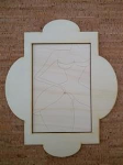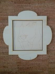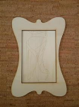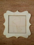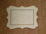 Quadro de madeira (choupo) com desenho gravado e com moldura de madeira em choupo com recorte a lazer.